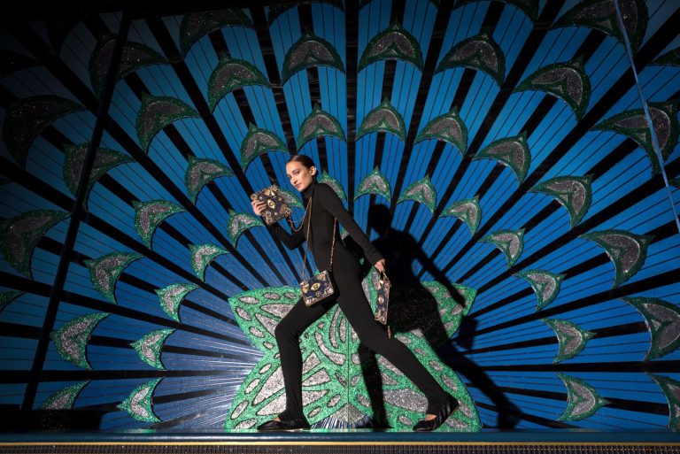Le mini-sac, la pochette rectangulaire, le porte-monnaie : tous capturent l’alchimie unique entre élégance, mysticisme et poésie, qu’ils matérialisent au travers d’un design singulier et captivant. Chacune des pièces se pare d’un bleu profond sur lequel se déploient des motifs dorés et blancs, évoquant ainsi le ciel d’une nuit étoilée.