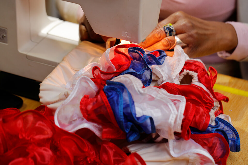 Mais que serait le French Cancan sans son costume emblématique ? La robe d’une danseuse est entièrement conçue par les Maisons d’Art du Moulin Rouge. Cela représente 200 mètres de frou-frou par jupon et 32 mètres par culotte. Les strass, nœuds et rubans sont assemblés à la main. Autant vous dire qu’avec la cadence de cette danse effrénée, les robes french cancan n’ont qu’à bien se tenir !