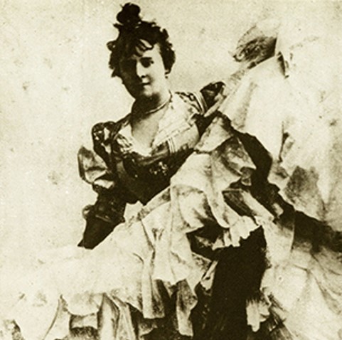 « séchait les fonds de verre dans les cabarets ». Passionnée de danse depuis sa prime jeunesse elle fait tourner ses froufrous dans les salles de bal jusqu’à ce que Joseph Oller décide de l’engager au Moulin Rouge pour le grand quadrille.