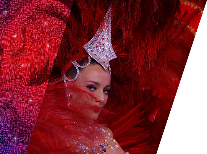 A 21h, la revue « Féerie » vous éblouira par ses costumes aux plumes flamboyantes, ses strass et ses paillettes, ses décors somptueux, et son French Cancan époustouflant !